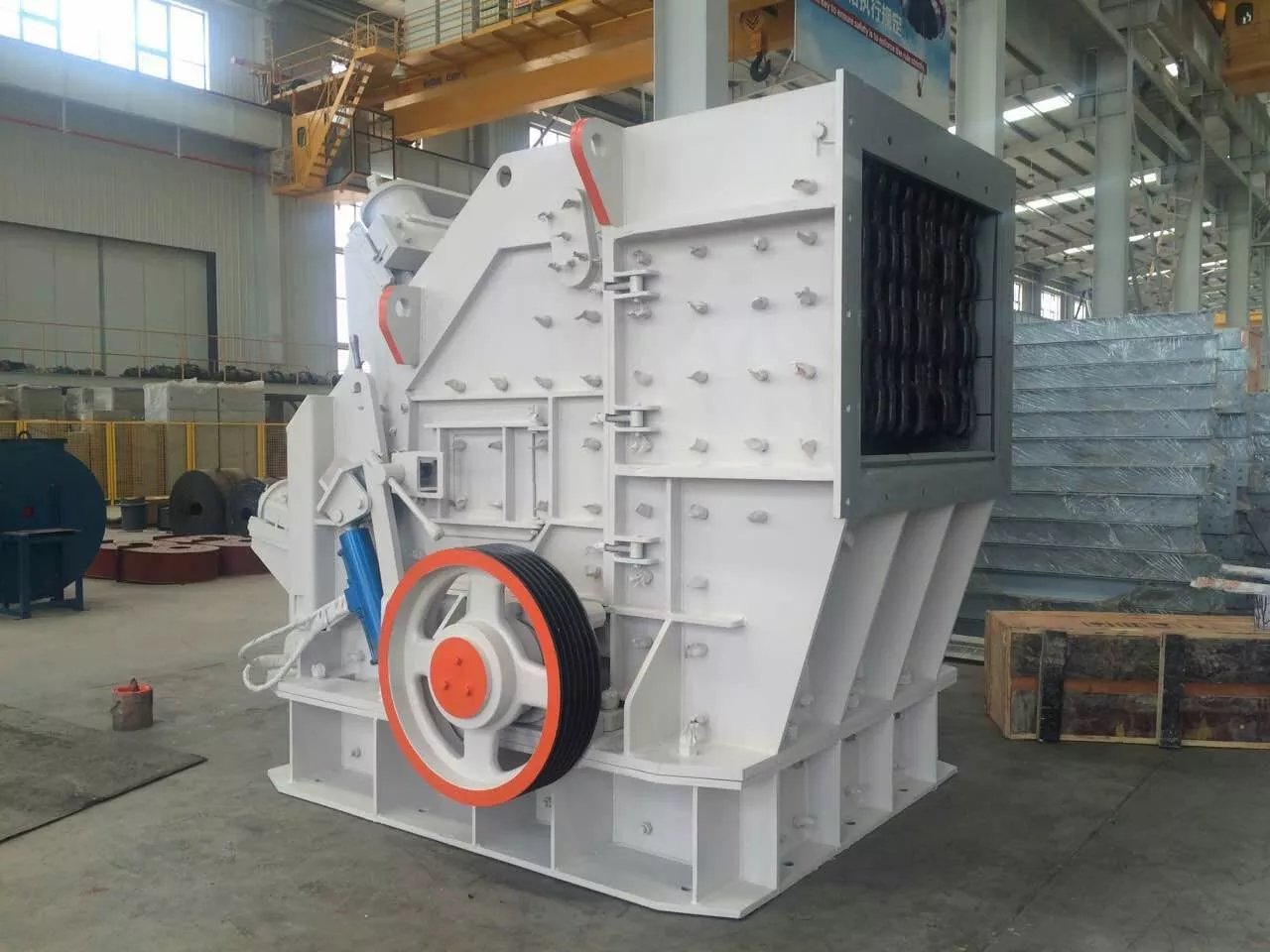 然后又从反击衬板上弹回到板锤作用区重新破碎,此过程重复进行,物料由大到小进